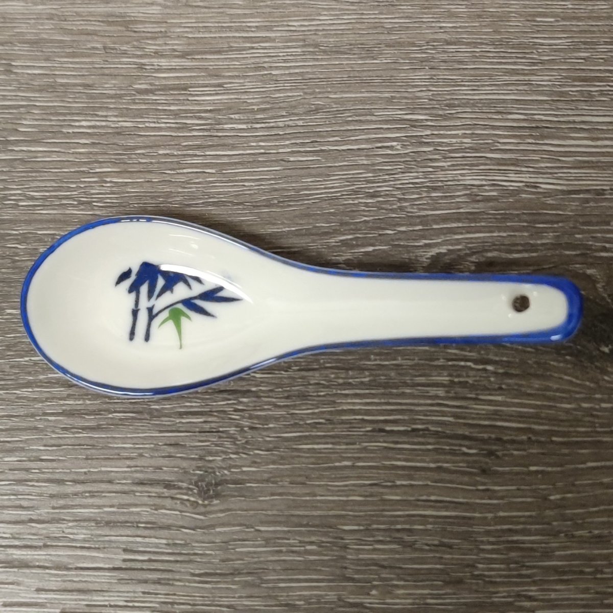 Tillverkat av glaserat, hårt porslin. Ytan är slät, lätt glansig och fläckbeständig. Skedbladet är grunt och brett – format som ett litet spade – för att enkelt kunna skära och lyfta klibbigt ris utan att mosa kornen. Handtaget är kort, lätt och bekvämt att hålla i.