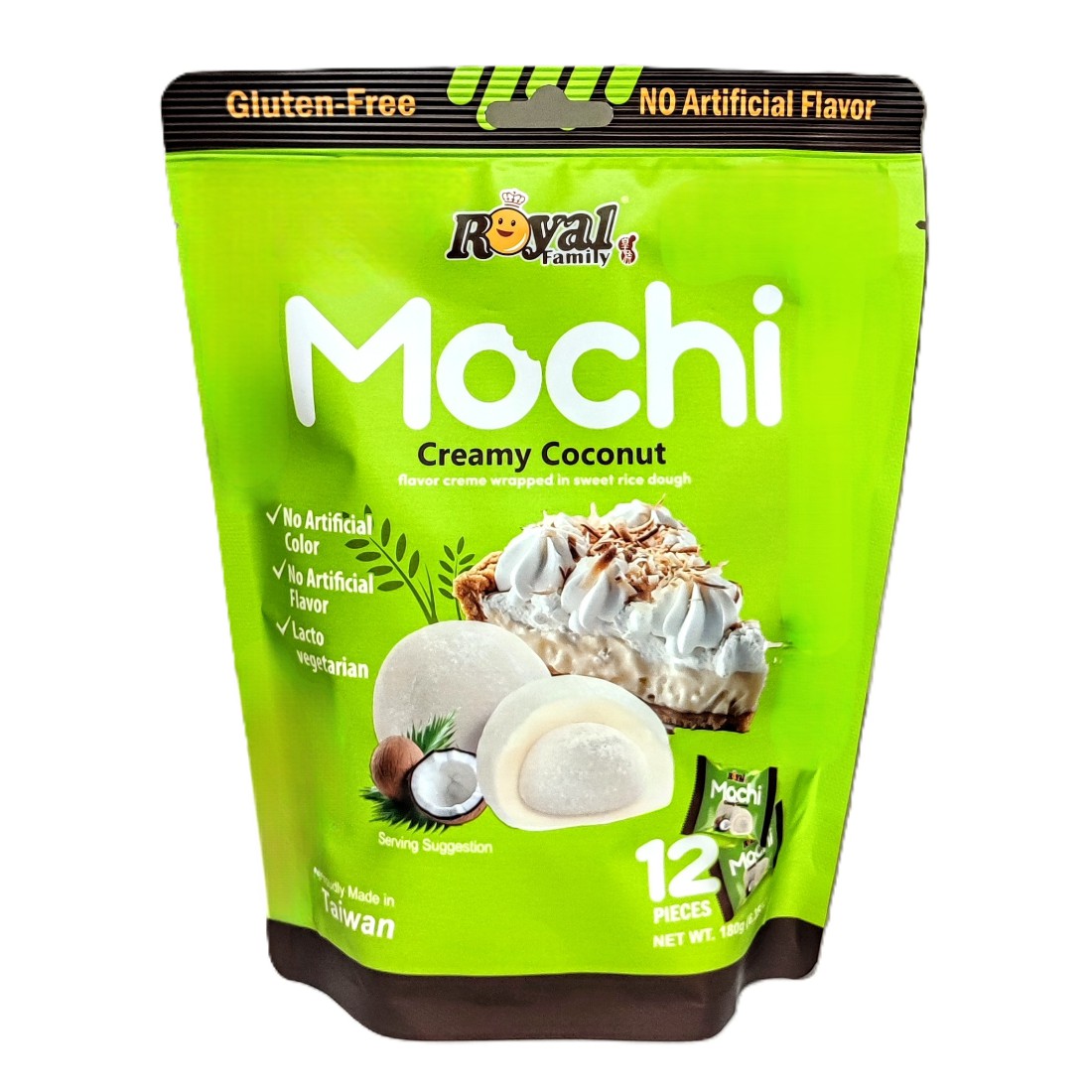 Ingredienser: Tapiokasirap 30,30%, socker, konstgjord krämig mjölksmak 23,75% (socker, palmolja, SOJApulver, kakaosmör, emulgeringsmdel (E322 (SOJA), E475), arom, salt), klibbigt ris 10,22%, förtjockningsmedel E1442, trehalos, kokosstrimla 1,25%, palmolja, emulgeringsmedel E471, salt, potatisstärkelse, arom, konserveringsmedel E202. Produkt kan innehåller spå av JORDNÖTTER, SESAM, NÖTTER, MJÖLK,.
