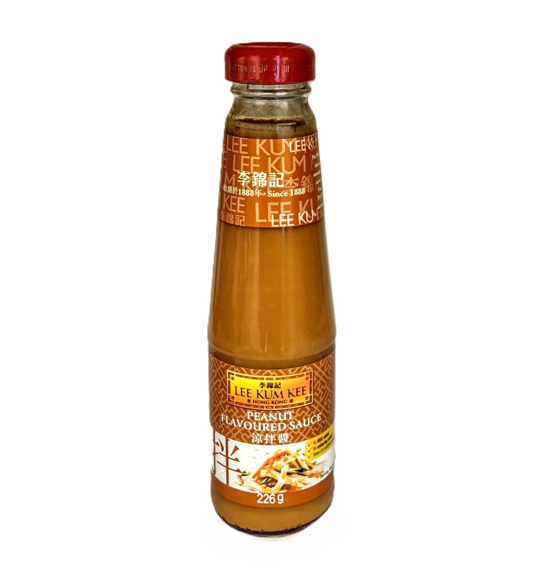 Ingredienser: vatten, socker, JORDNÖTSPASTA, SOJASÅS (vatten, salt, SOJABÖNOR, VETEMJÖL), SESAMOLJA, risvinäger, saltad chili (chilipeppar, salt), vitlökspulver, salt, modifierad majsstärkelse, surhetsreglerande medel: ättiksyra, xantangummi, monoglycerider.