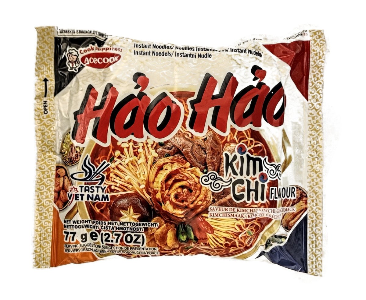Hao Hao Kimchi smak är en snabbnudelvariant som kombinerar bekvämligheten med snabbnudlar med den sura, starka och umamirika smaken av fermenterade kimchi.