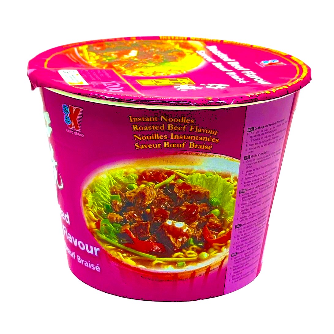 Ingredienser:Nudlar: VETEMJÖL, palmolja, modifierad tapiokastärkelse, salt, vitlök, övriga tillsatser E500(i), E501(i).Kryddpåse: Salt, socker, övriga tillsatser E621, maltodextrin, biffsmak ( glukos, modifierad majsstärkelse, jästextrakt, aminosyror, hydroliserad vegetabiliskt protein ( SOJABÖNOR), socker, kryddor ( vitlök, peppar, stjärnanis), SOJAsåspulver (SOJAbönor, maltodextrin, färgämne (E150a), övriga tillsatser E627, E631, salt), kryddor (vitlök, ingefära), jästextrakt, tomatpulver, färgämne E150c, övriga tillsatser E551.Sås: palmolja, kryddor ( vitlök , peppar, ingefära), VETEmjölpasta (VETEmjöl, salt, socker, vatten), biffsmak (glukos, modifierad majsstärkelse, jästextrakt, aminosyror, hydroliserad vegetabilisk protein (SOJAbönor), socker, kryddor (vitlök, peppar, stjärnanis).Torkade grönsaker: morötter, vitkål, kinesisk gräslök, ärtor.Nettovikt:120gNäringsvärde per 100gEnergi 1911 kJ/ 456 kcalFett 21g-Varav mättat fett 9gKolhydrater 57g-Varav sockerarter 3,1gProtein 9,6gSalt 5g